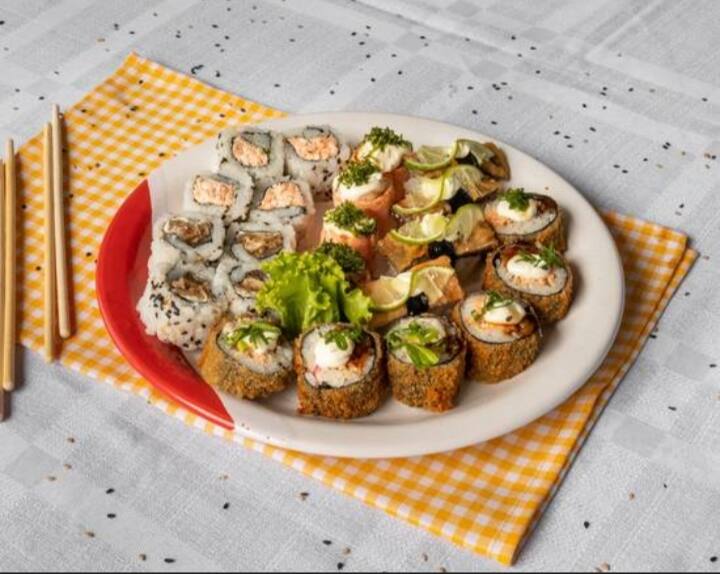 26 peças ( 10 hot roll/ 4 uramaki grelhado / 4 uramaki skin /4 niguiri skin/ 4 dyo maçaricado