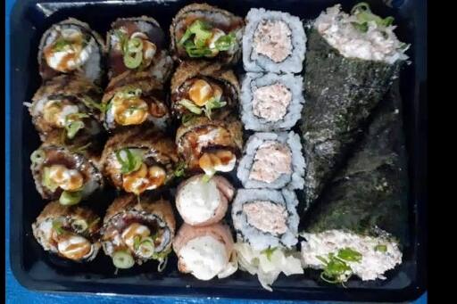 20 pecas / 4 niguiri skim , 4 niguiri salmão ,4 urmaki salmão ,4 dyo , 4hossomaki