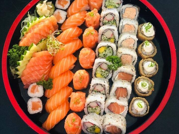 54 peças / 8 sashimim ,8 niguiri ,8 dyo, 8 uramaki Califórnia, 4 urmaki salmão, 4 uramaki grelhado, 4 hossomaki , 10 unidades hot holl