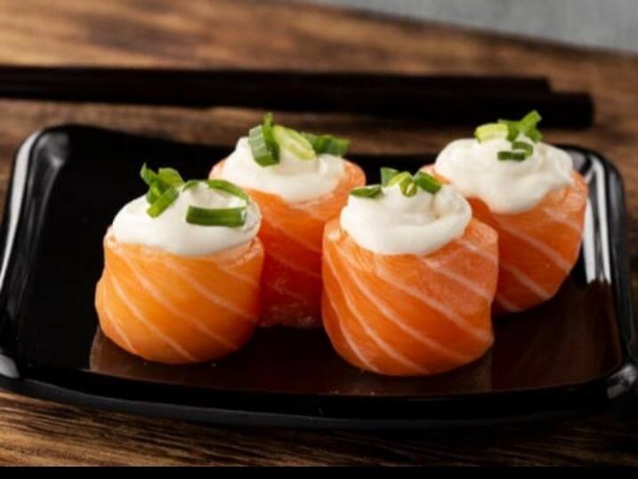Aneis de salmão cobertos com cream chesse e um toke de cebolinha