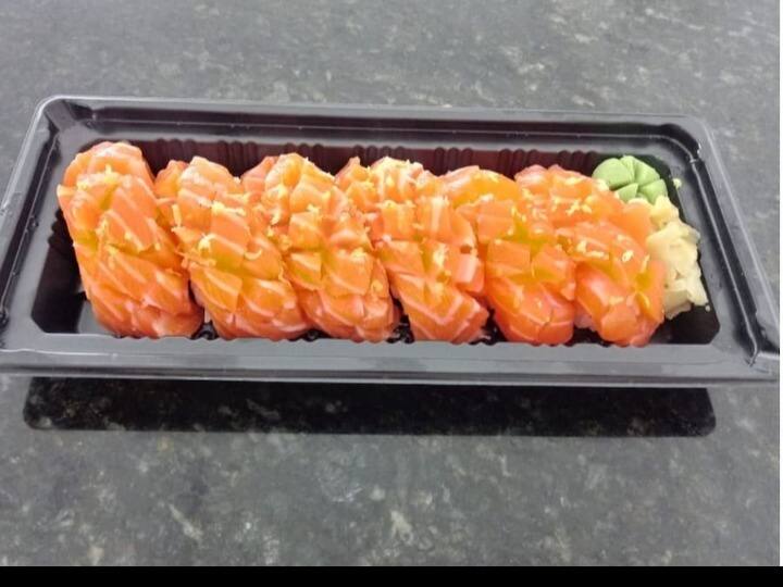 8 unidades de niguiri da barriga com toke de azeite e raspa de limão